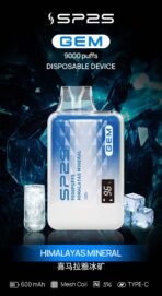 SP2S GEM 9000 puff一次性電子菸,搭載650mAh電池、12mL煙油、Mesh Coil霧化技術與智能顯示屏,實時監控電量與煙油。奢華水晶外殼,可調氣流,10種口味如冰礦泉茉莉、草莓物語,帶來順滑濃郁的吸煙體驗。